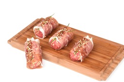 Kipfilet omwikkeld met spek in een wiskeymarinade.